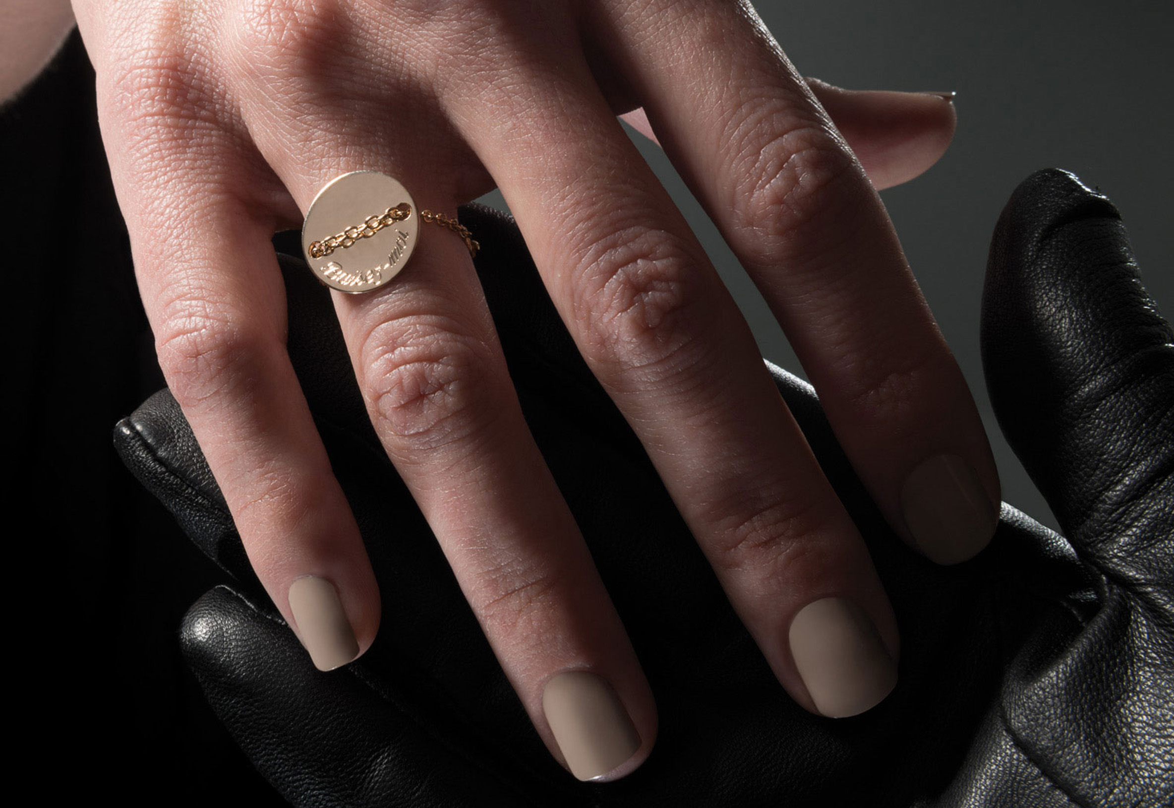Afin de susciter un peu de délicatesse et de respect dans ce monde de brutes, «la bague qui défie les convenances» est en plaqué or ou plaqué argent et gravé des mots «Baisez-moi»…